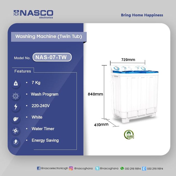 1 X NAS-07-TW 7kg Semi Automatic Twin Tub Washing Machine – White